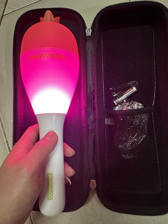Em light sitck cực vip mamamoo có nhiều màu sắc . Cái hộp hok là đã xịn xò rồi ạ kkk. New 100% chỉ bỏ pin vào test cho aceCòn dây đep chéo trong bịch