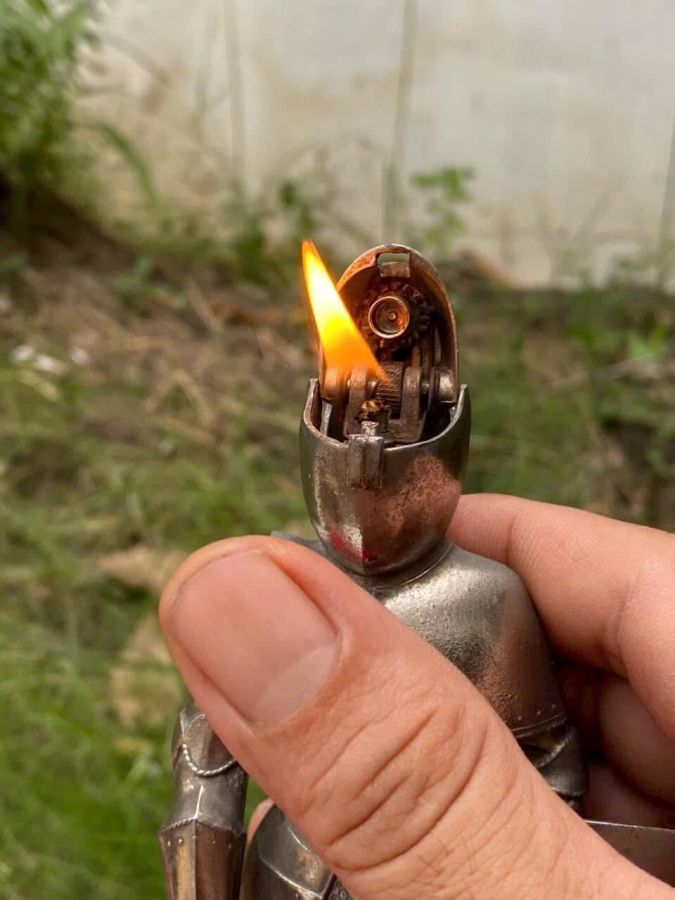 Bật lửa lính Là Mã của Đức sản xuất thập niên 1950s Có giấy khai sinh đi kèm Dùng xăng đá Hàng đẹp- lửa nhạy, kín xăng Để bàn trà, phòng khách hay sưu tầm đều quá OK luôn Cao : 18,5cm- ngang 8cm Liên hệ đt zalo 0909925312 Tùng Cần Thơ