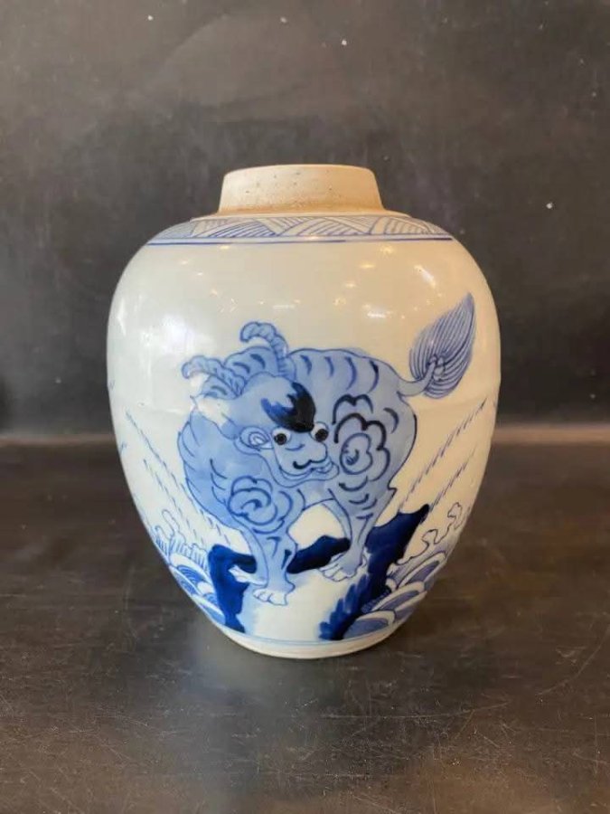 Lọ chè vẽ long mã