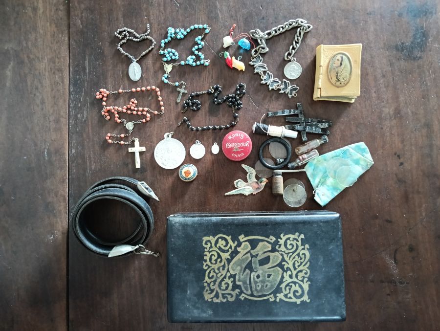 Lô đồ trang sức xưa đựng trong hộp của nhà giàu đạo Công giáo