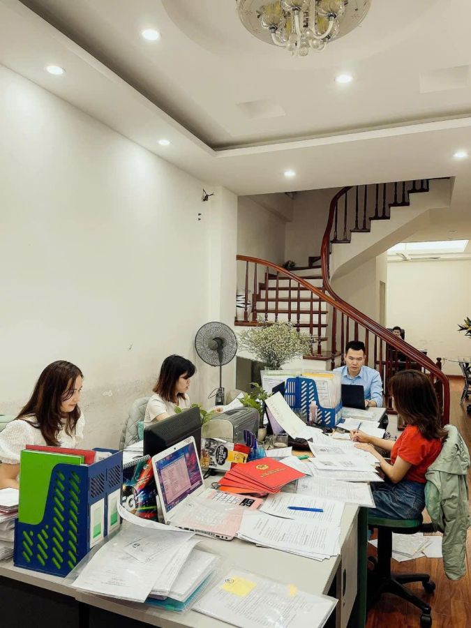 Thiết kế 4 tầng, tầng 1 Phòng khách và bếp. Tàng 2 thông sàn. Tầng 3,4: Mỗi tầng 2 phòng