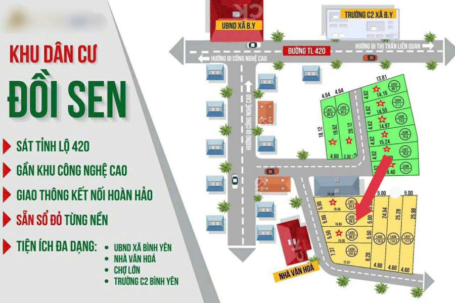 Sở hữu ngay lô đất ĐẮC ĐỊA tại Hẻm 420, xã Bình Yên, Thạch Thất, Hà Nội. Vị trí cực kỳ thuận tiện, gần chợ, trường học, bệnh viện, dễ dàng di chuyển vào trung tâm thành phố. Đây là cơ hội đầu tư lý tưởng, không thể bỏ lỡ!