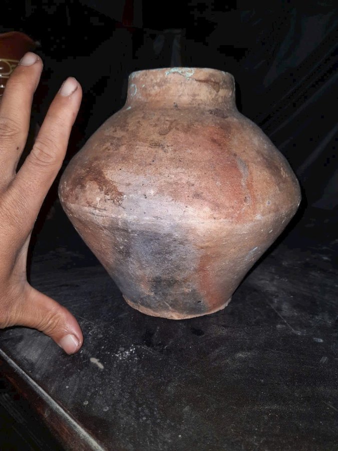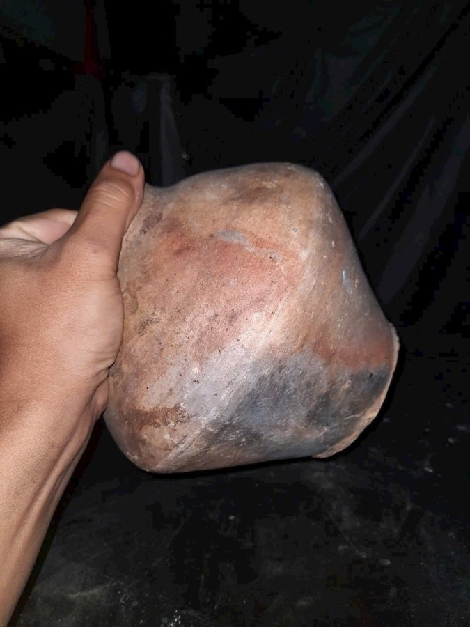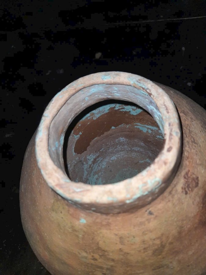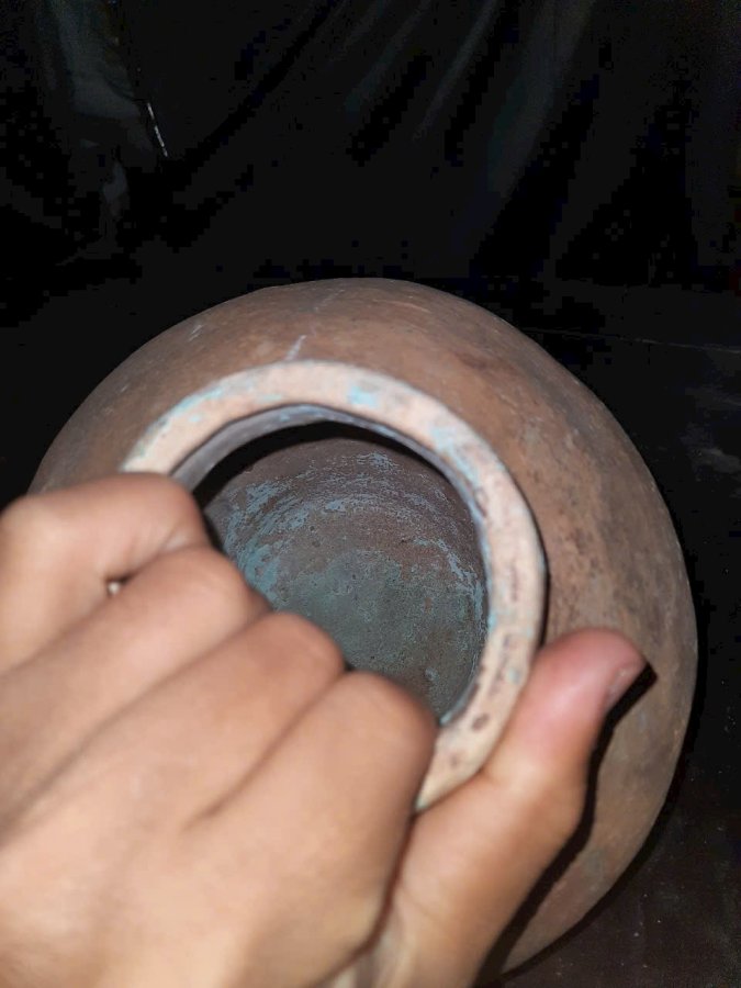 Bình gốm chămpa cổ cao 20cm. Lành đẹp. Dùng cắm hoa nghệ thuật thì hợp lý.