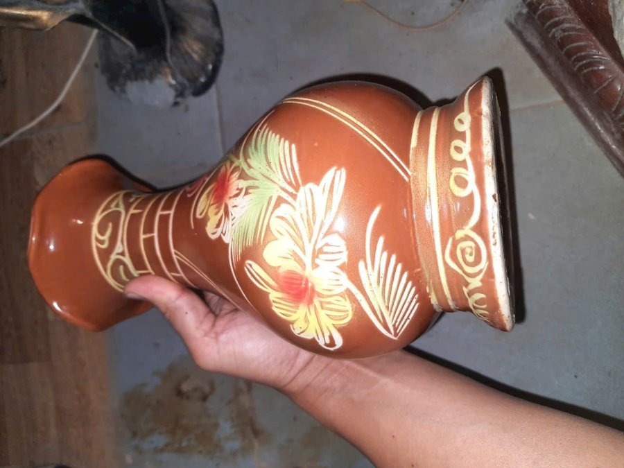 Lọ hoa sứ bát tràng khoảng năm 1991 vẽ hoa. Cao 26,5cm. Miệng 11,5cm. Màu đỏ nâu gạch cua may mắn. Lành đẹp.