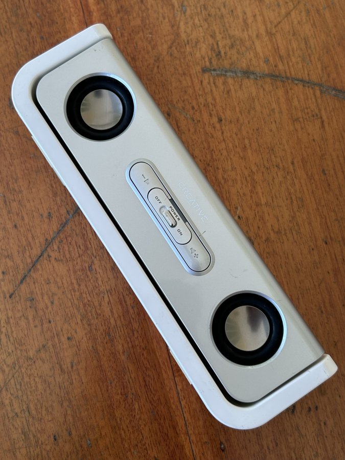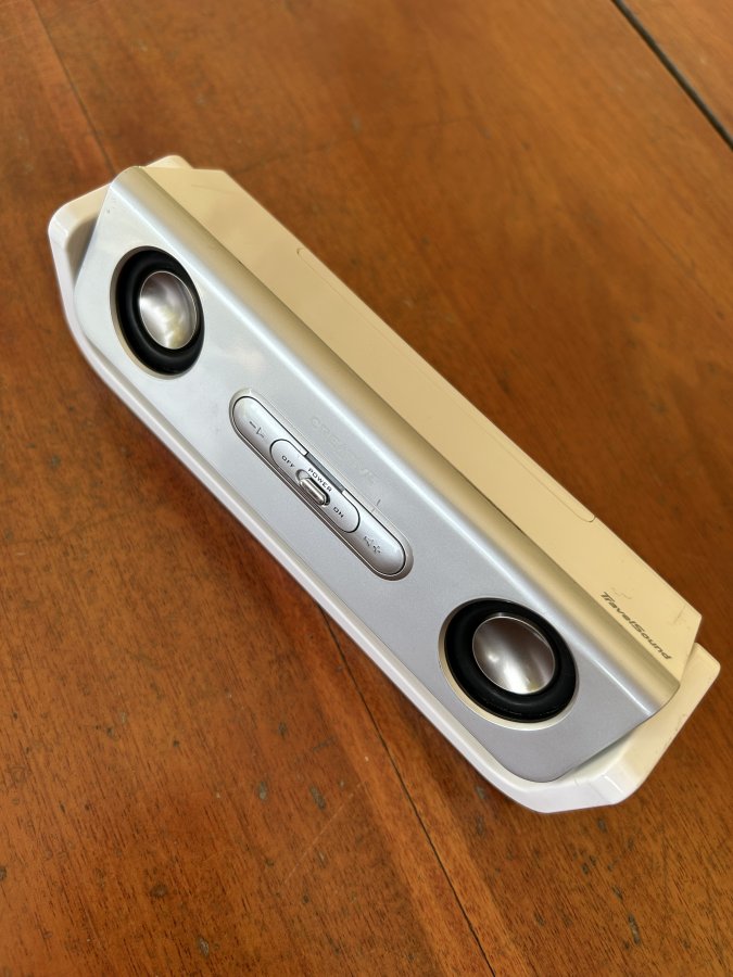 Bán 1 loa Creative travel sound 250 còn như mới. Loa 33mm từ Neo Titanium với dải tần thiết kế ấn tượng 150Hz~20kHz. Loa sử dụng nguồn adapter 5vdc hoặc 4pin AAA, kết nối nguồn phát qua jắc stereo 3.5ly. Trải nghiệm bình dân, âm thanh ấn tượng!