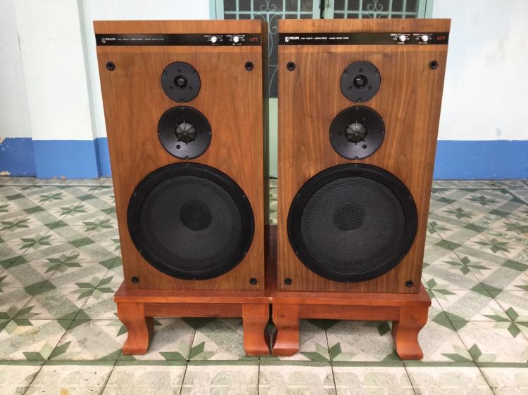 Loa Philips High Fidelity Laboratories 477, zin đẹp xuất sắc- loa nhập từ USA về ,bass 30cm màn giấy, viền xốp mũi lưới, mid dome giấy, treble dome, dải trầm mềm xuống sâu, mid rất tốt tiếng mượt sáng , treble cực tơi,- thùng loa rất nặng, ngang 40cm sâu 37cm cao 71cm,- cặp thùng philips này nhìn ngoại hình rất gấu và đẹp, rất hiếm và rất hay cho ae đáng sưu tầm- 3 giải âm nghe nhạc vàng ,trữ tình rất tuyệt