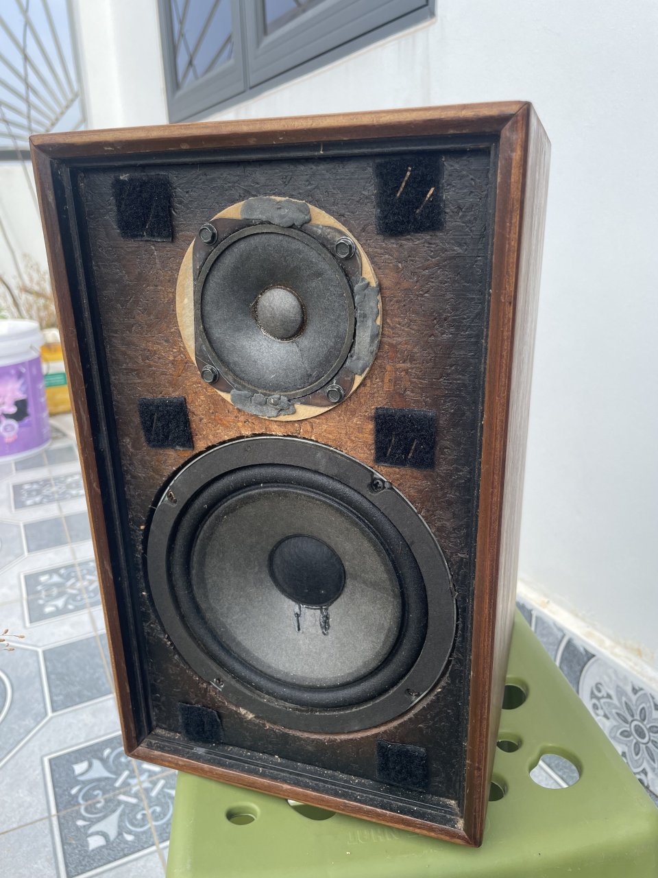 Loa bass 16 nam châm bánh trưng đúng chất cổ. Loa thùng kín gắn keo chặt nên em không tháo được củ bass.