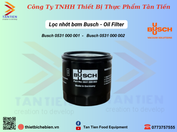 - Lọc dầu bơm hút chân không gồm có 2 loại 0531000001 và 0531000002 được dùng cho tất cả các loại bơm Busch trong các dòng máy hút chân không