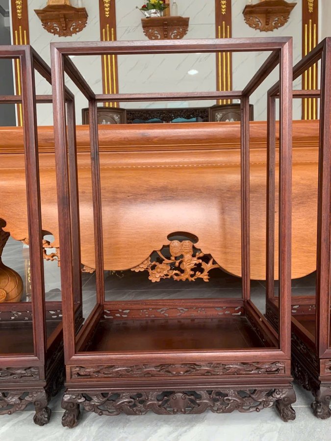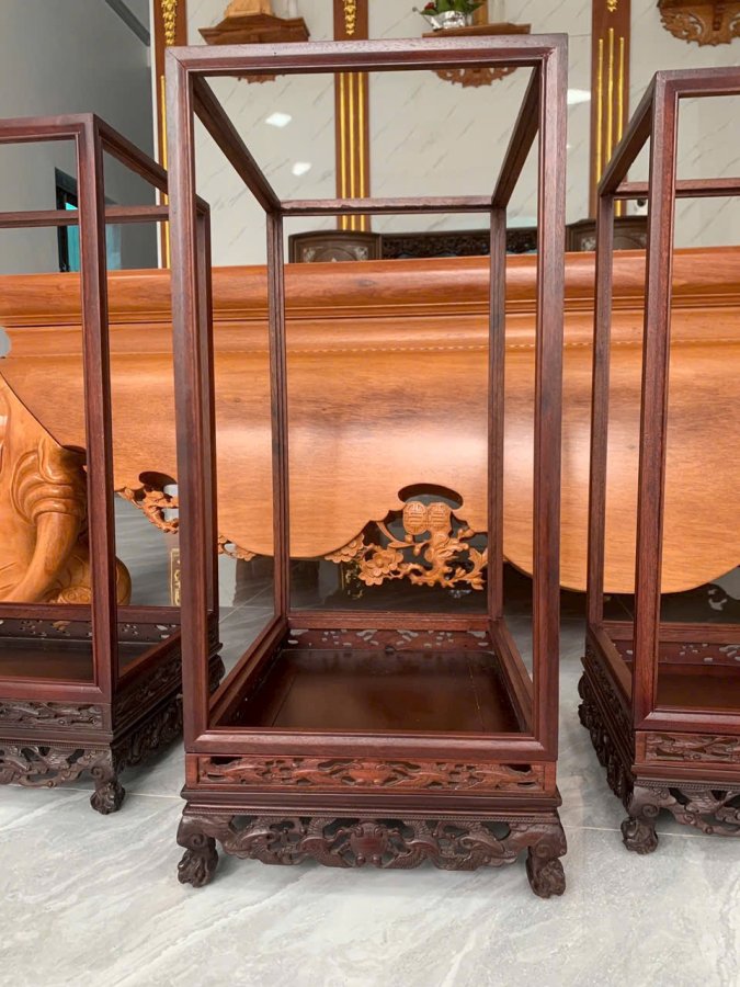 Lồng kính gỗ gụ Kt 30 x 40 cao 55 Kt phủ bì 31 x 41 cao 65