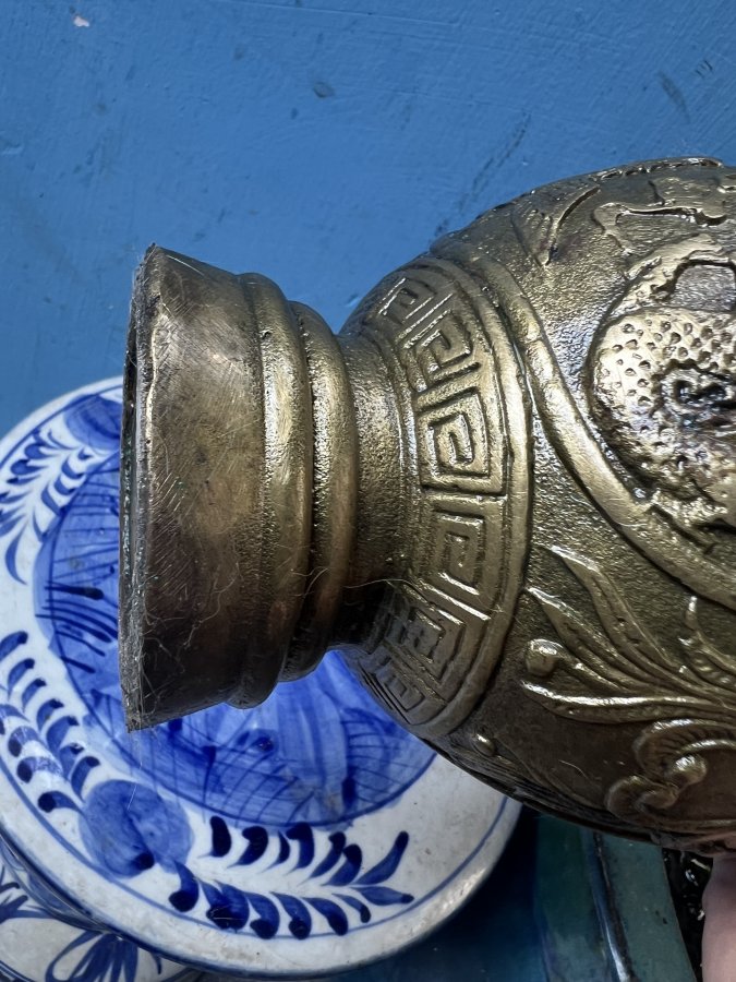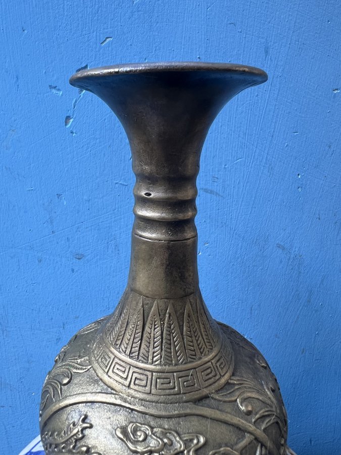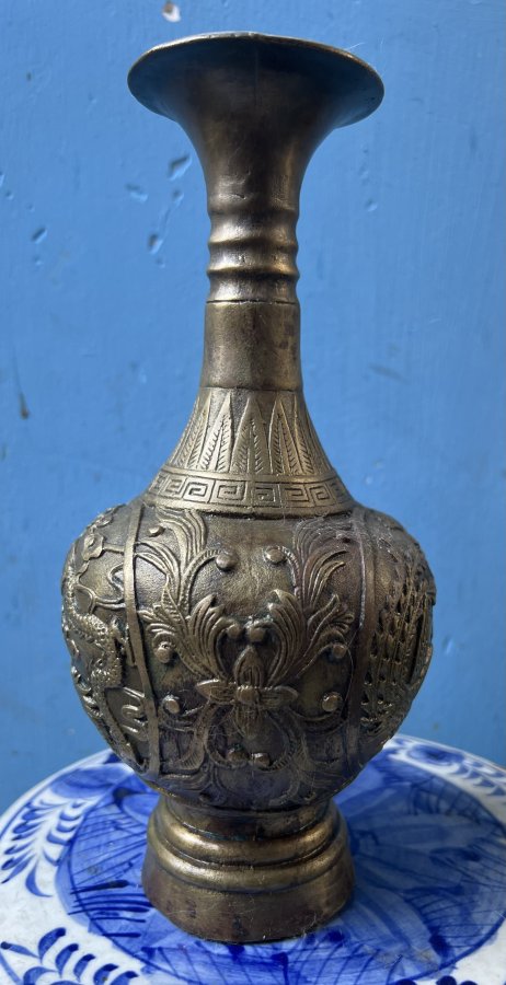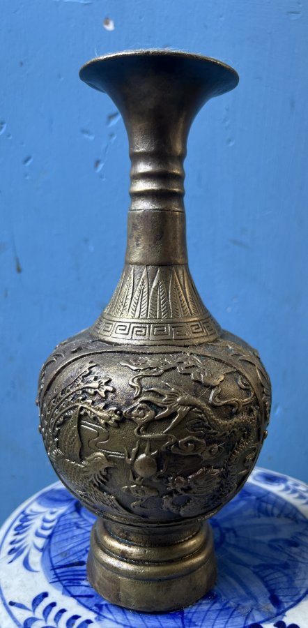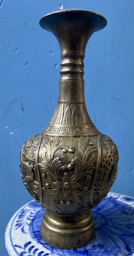 Long Phụng Sum Vầy Bình đồng xưa cổ Cao 24cm Nặng 1,2kg