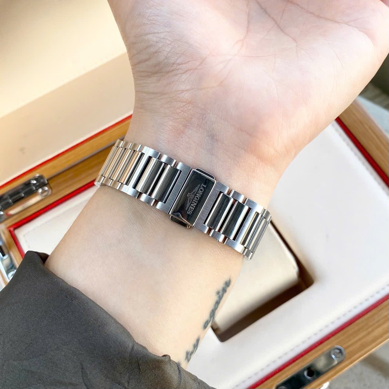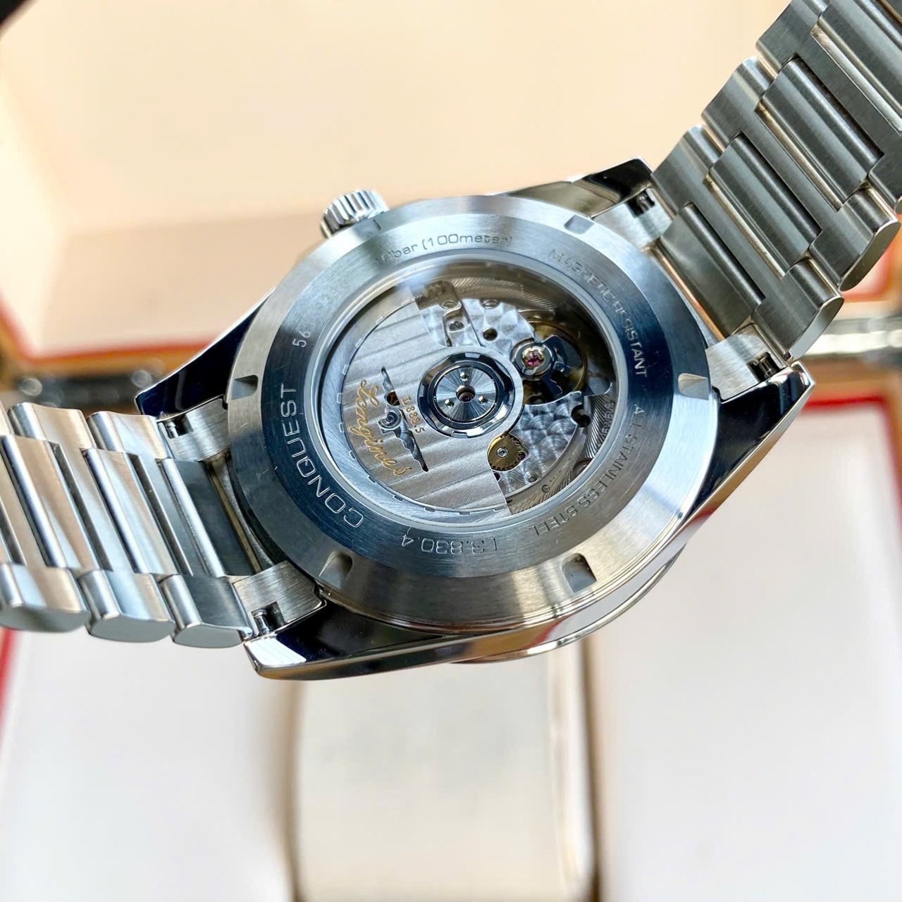 • Automatic, caliber L888 (25,200 vph), trữ cót 72 giờ, dây tóc silicon kháng từ. Bộ máy mạnh mẽ với khả năng trữ cót 72 giờ và độ bền theo thời gian.