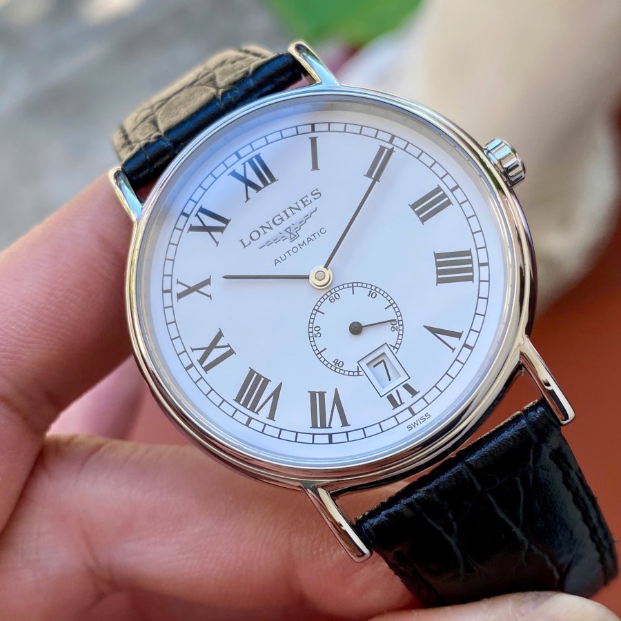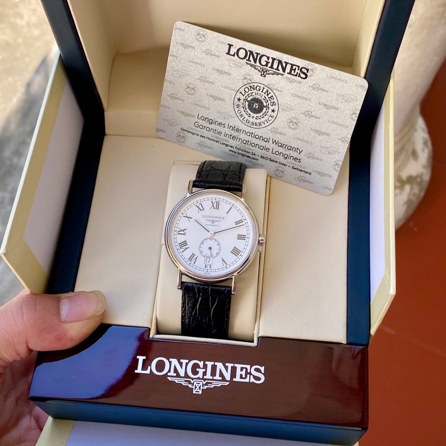 Longines L4.805.4.11.2Thiết kế mặt trắng thanh lịch Sz 38.5 kính saphire Mỏng dễ đeo Máy L615.3 bền bỉ Fullbox sổ sách thẻ Lướt như mới