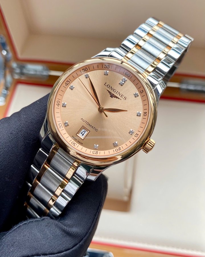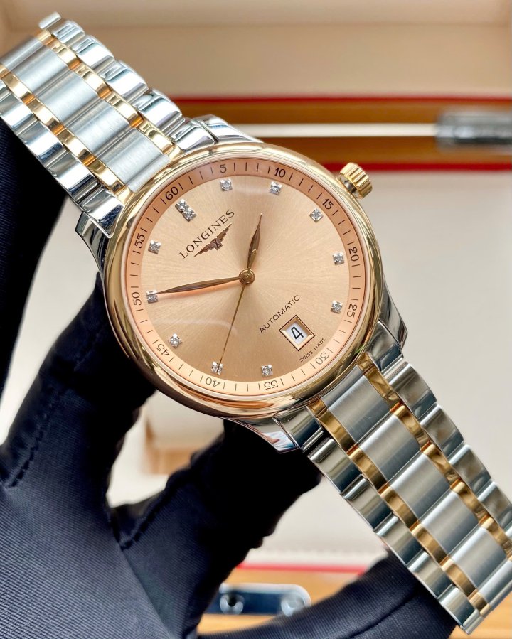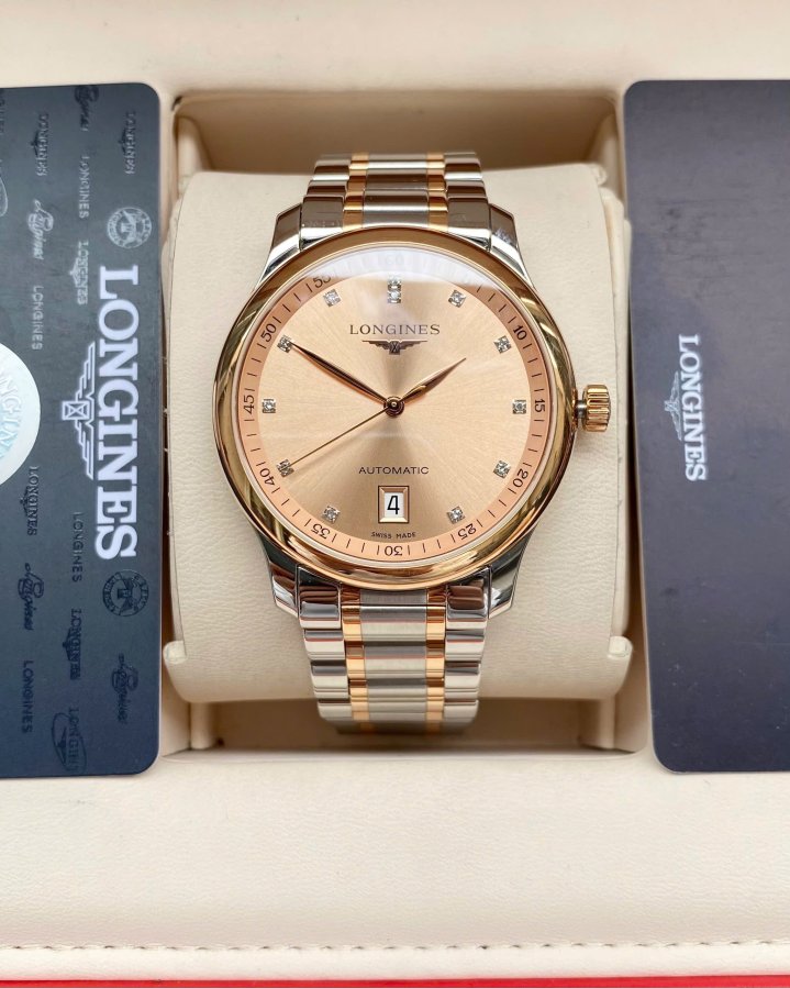 Longines Master Collection Diamonds Cá hồi, L2.628.5.99.7, Demi Vàng hồng 18k, Size 38.5mm, Máy đời mới L888, Like new fullbox, Giao lưu 46 triệu (Retail:~120 triệu) ah