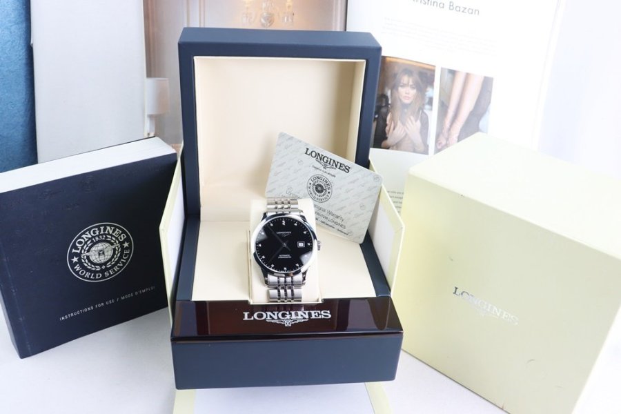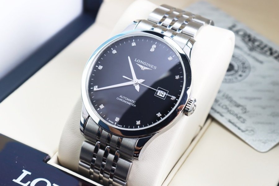Đồng Hồ Nam : Longines Record Chronometer Automatic L2.821.4.57.6 Diamond - Size 40mm, Fullbox...