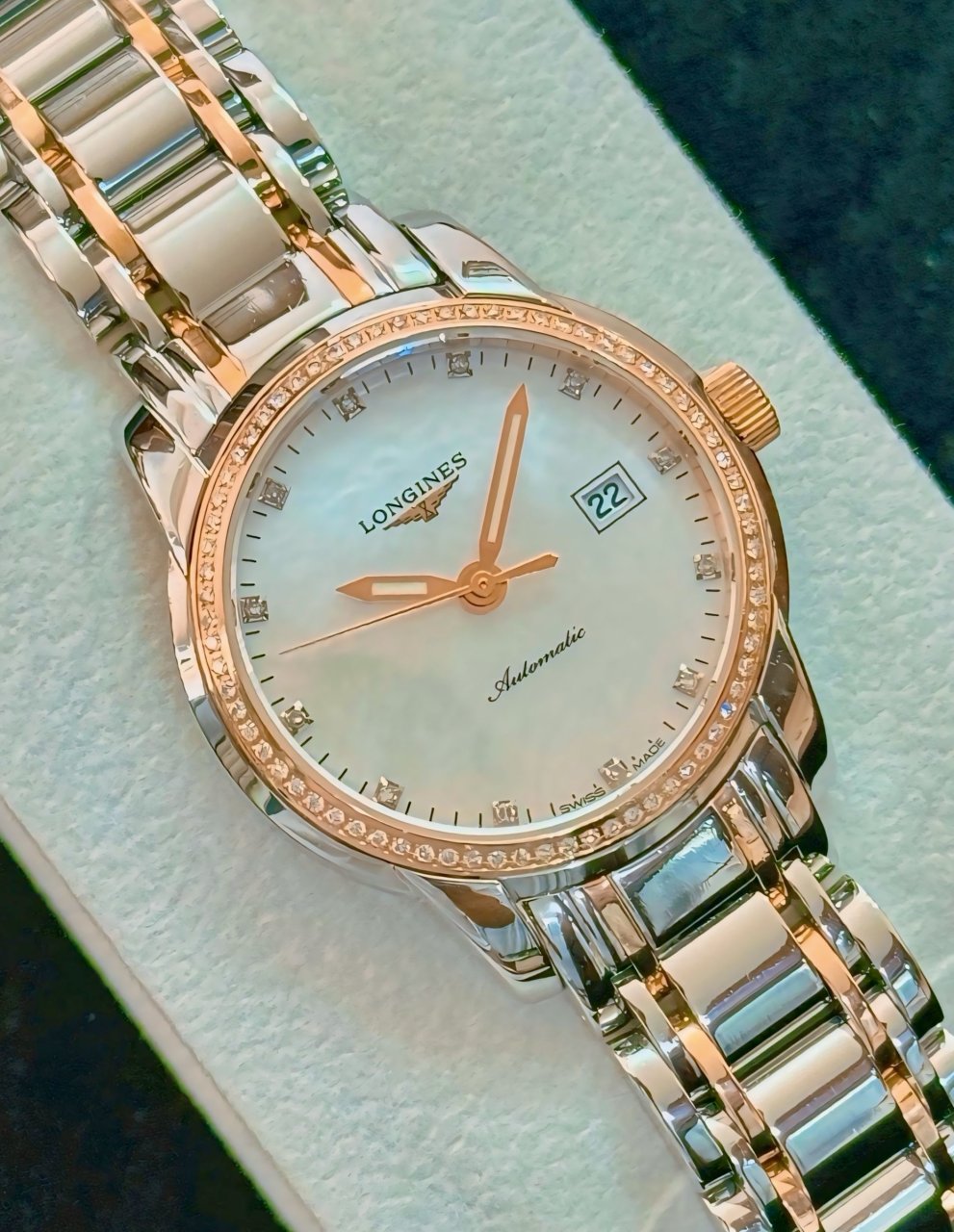 • Kiểu máy: Automatic, máy tự động Longines Thụy Sỹ, chính xác và tiện lợi.
