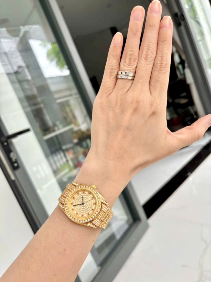 - Thương hiệu chính hãng - Hiện trạng : hàng trưng bày fullbox- Size : 36mm- Máy : quartz- Mặt ĐH : đính ruby và đá quý cao cấp- Dây đính đá===============Giá Hãng: 23triệuGiá Em T/lý: 4,8 triệu