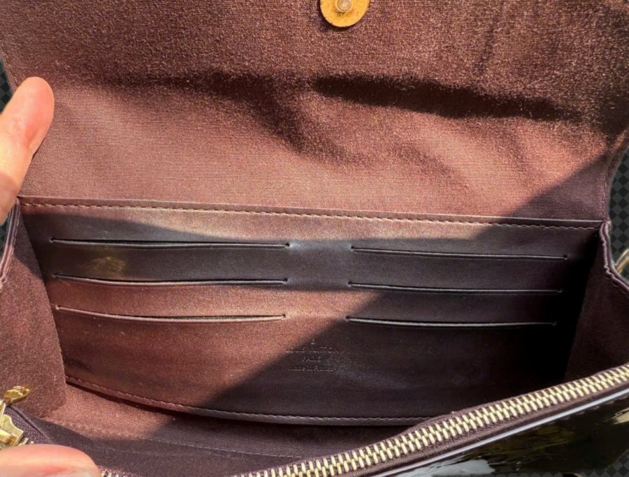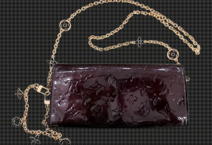Louis Vuitton M93543 Amarante Monogram Vernis Sunset Boulevard Wallet on Chain/ Clutch/ Shoulder Bag.