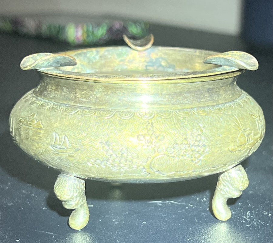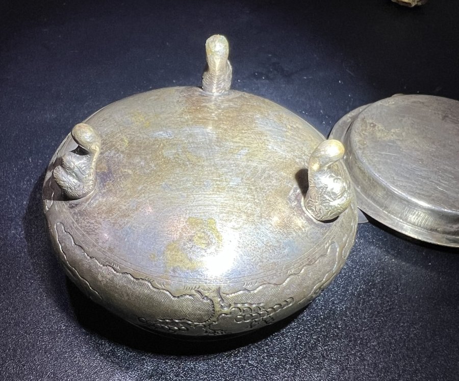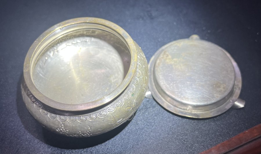 Lư đồng lacke bạc cổ xưa Cao 5cm. Đk: 8cm