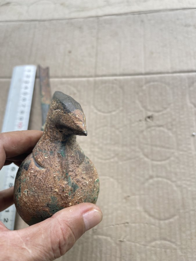 Sản phẩm làm bằng gang sắt nặng gần 800gr. Chưa vệ sinh nên vẫn còn nét cổ xưa của nó. Loại này được nhiều nhà sưu tầm săn đón. Anh chị mua về trang trí, decor rất đẹp. Cám ơn đã xem tin.