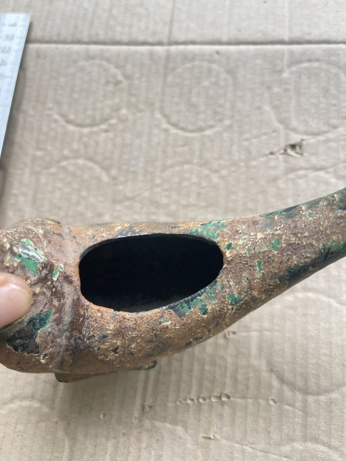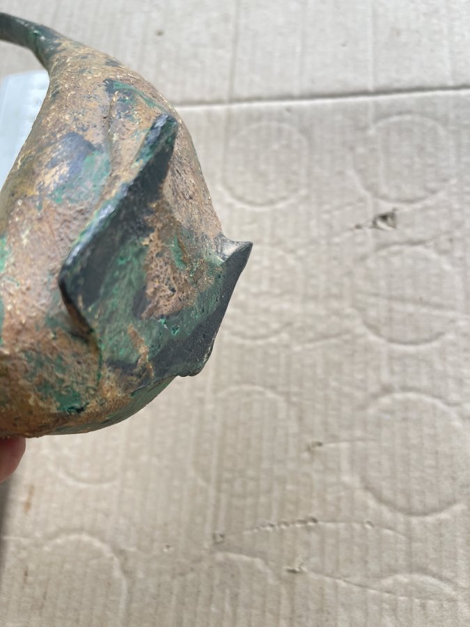 Sản phẩm làm bằng gang sắt nặng gần 800gr. Chưa vệ sinh nên vẫn còn nét cổ xưa của nó. Loại này được nhiều nhà sưu tầm săn đón. Anh chị mua về trang trí, decor rất đẹp. Cám ơn đã xem tin.