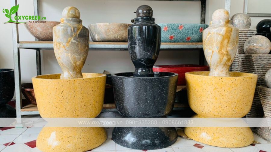 _Phụ kiện gồm: bình kèm bi xoay, 1 đôn, 1 chậu (vuông/tròn), 1 máy bơm