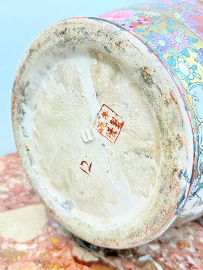✨ **Lục Bình Trung Hoa Xưa – Phong Cách Famille Rose, Có Triện Mộc** ✨