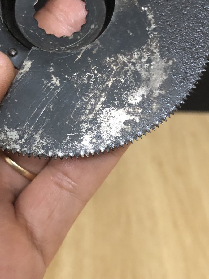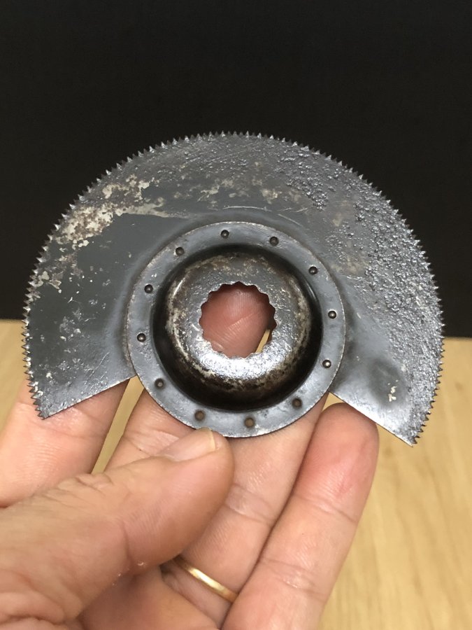 Hàng đã qua sử dụng nên không còn thấy hiệu,răng vẫn còn lành nguyên,mặt lưỡi có gổ gỉ.Cảm ơn đã xem tin