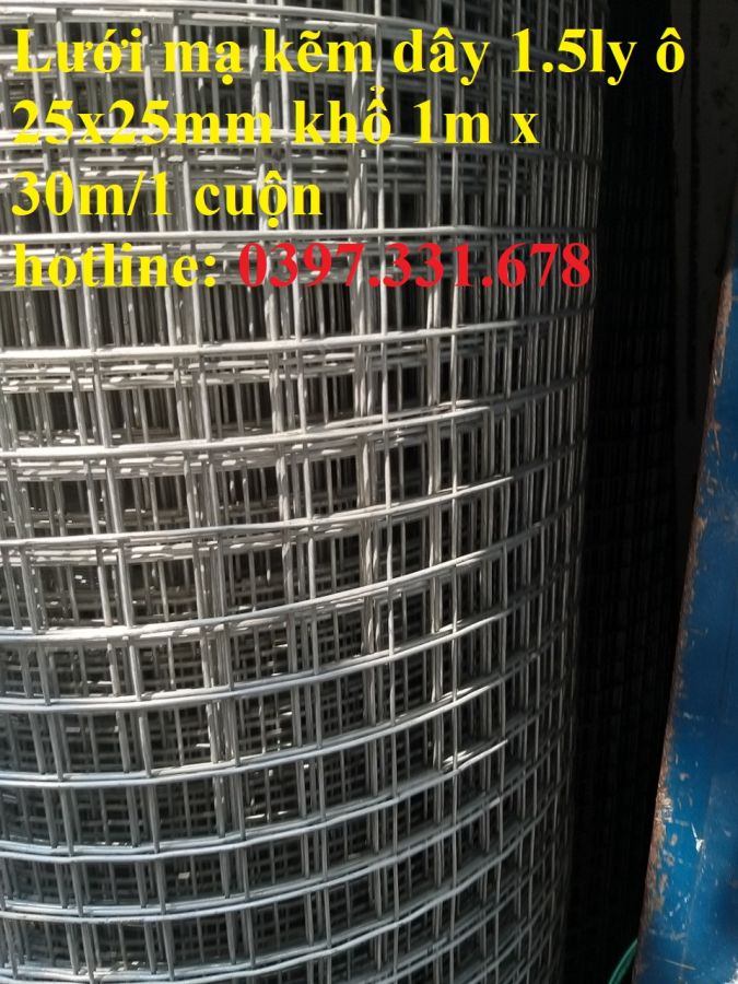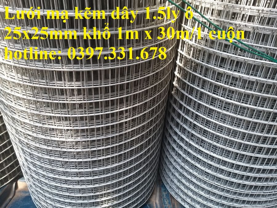 Lưới thép hàn mạ kẽm dây 1.5ly ô 25x25mm thép mạ kẽm, thép đen