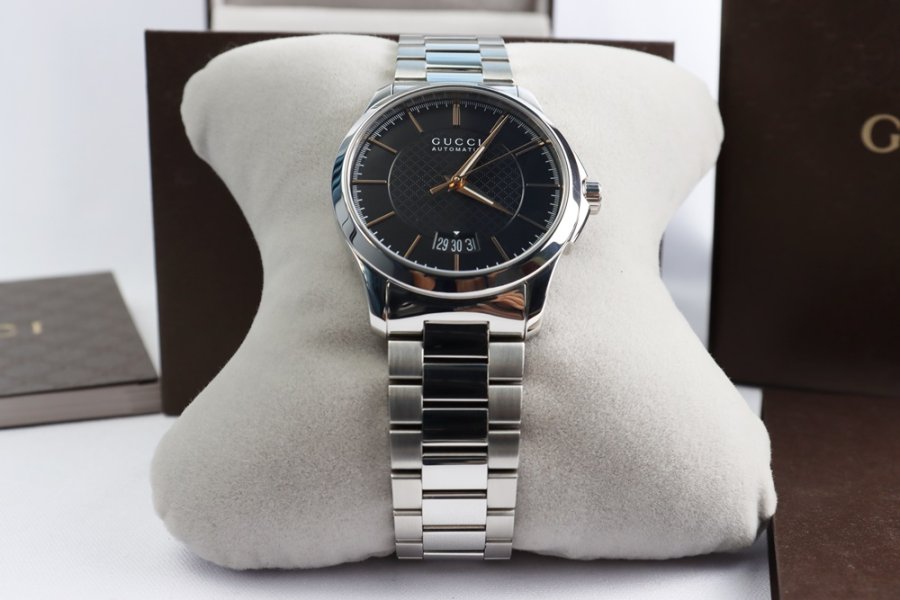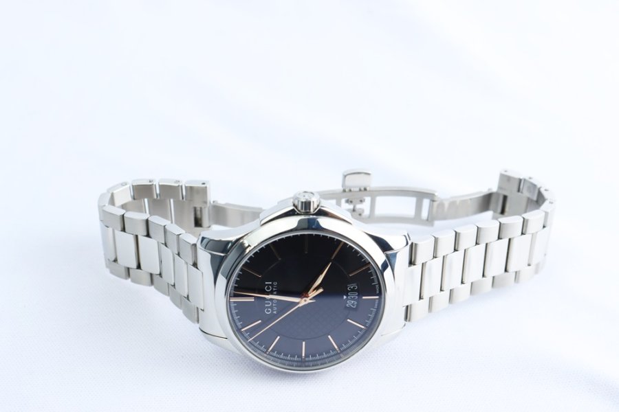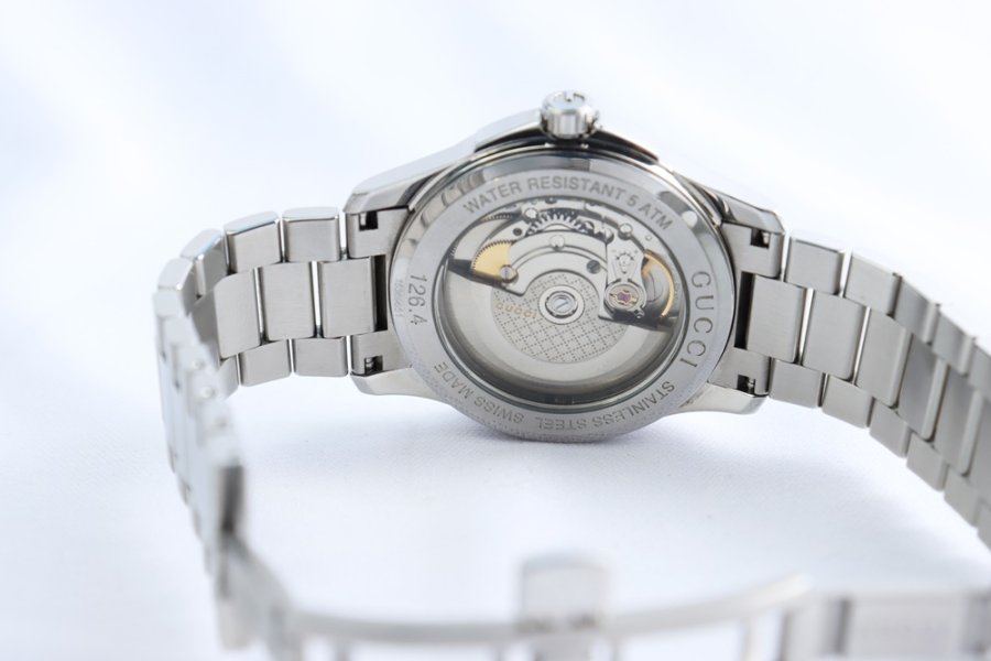 Mẫu automatic nam từ Gucci, thiết kế lộ máy ấn tượng và hoàn thiện dây thép sang trọng – giữ trạng thái gần như mới.