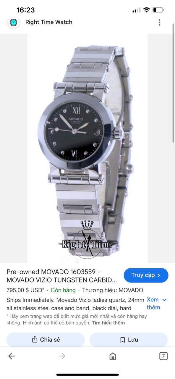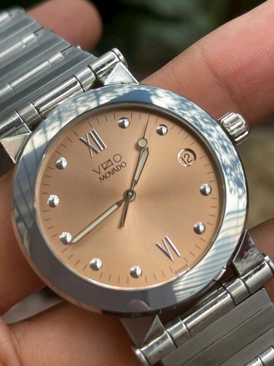 M O V A D O / Swiss MadeChính hãng Size 38Chưa núm Máy Pin thuỵKính saphire Niềng đáDây khoá zinChống nước 50mMới 95%( Mới 15tr )💲zá 2.xxx ka( k hộp )