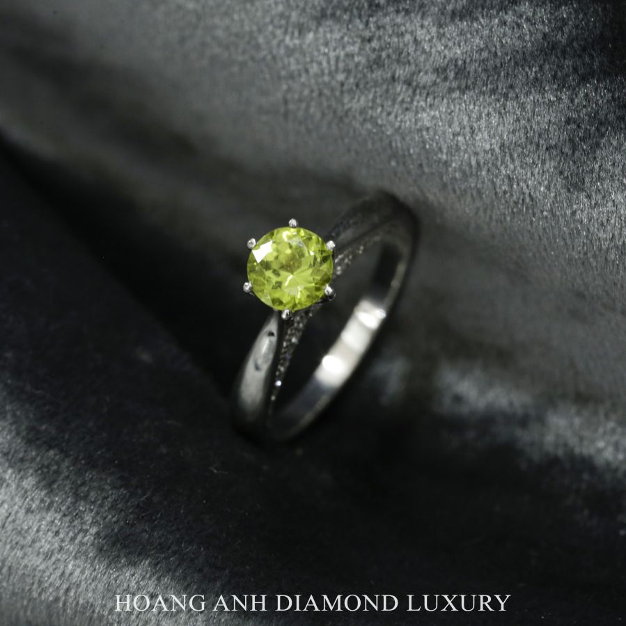 M042182 Nhẫn VT14K Gắn Chủ Peridot Thiên Nhiên ( Ngọc Lục Bảo Chiều Tà ) 5,1 ly và 61 viên 0,8 -1,6 ly