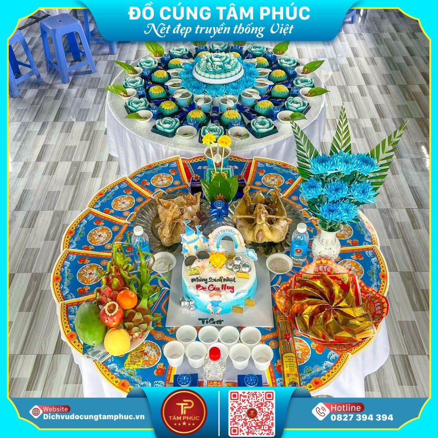Để giúp gia đình chuẩn bị đầy đủ, trang trọng mà vẫn tiết kiệm thời gian, Tâm Phúc cung cấp dịch vụ mâm cúng thôi nôi trọn gói, gồm: