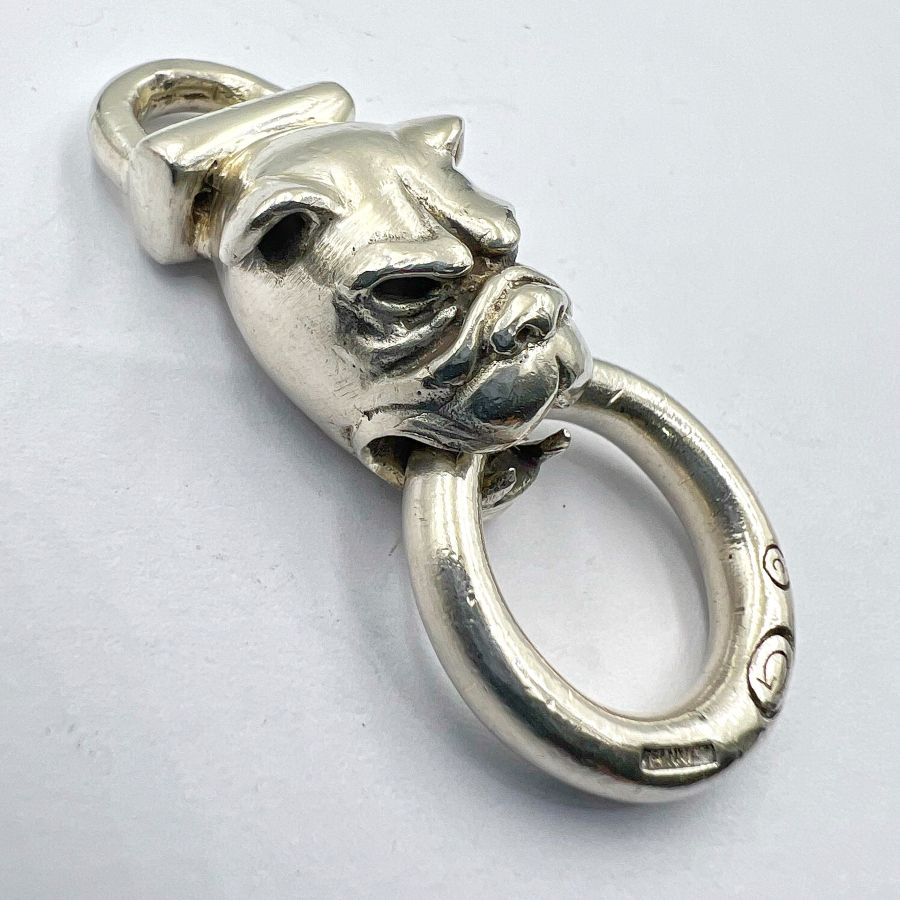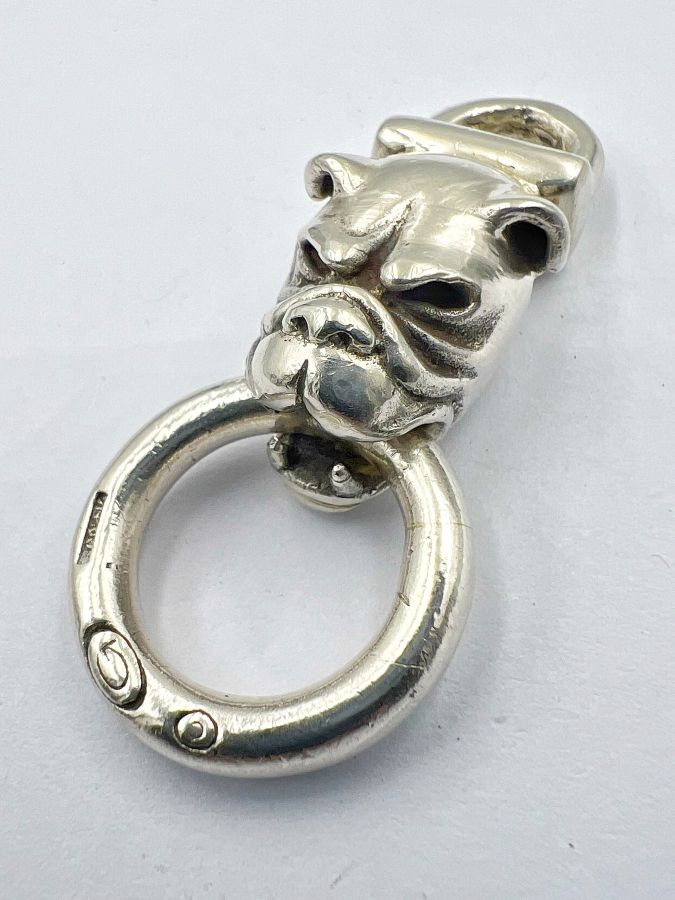 Mặt Bulldog bạc 925 Nhật hiệu gabor hoa văn sắc nét rất đẹp, vòng tròn xoay đc, phôm bự, size 24x54mm, nặng 42gram (11.2 chỉ)
