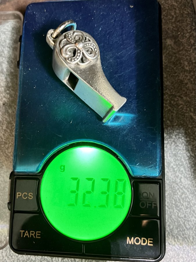 Mặt còi bạc 925 hiệu William Walles hoa văn sắc nét rất đẹp, tiếng thổi to và thanh, size 23x46mm, nặng 32.38gram (8.63 chỉ) Thiên 0923.12.6789