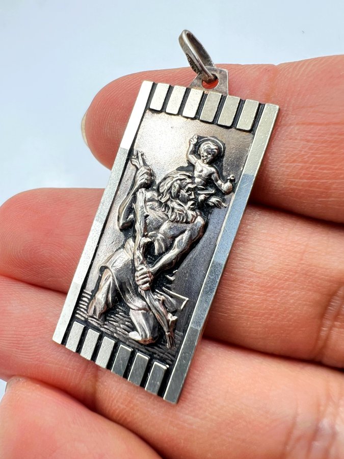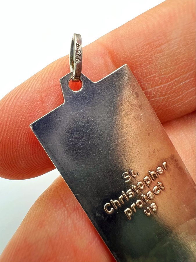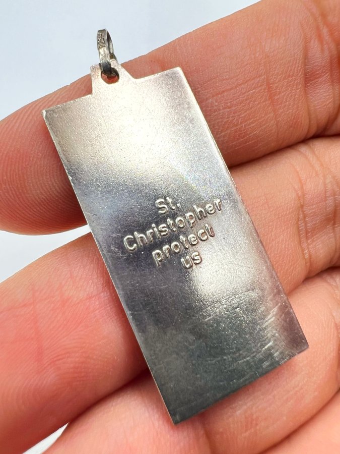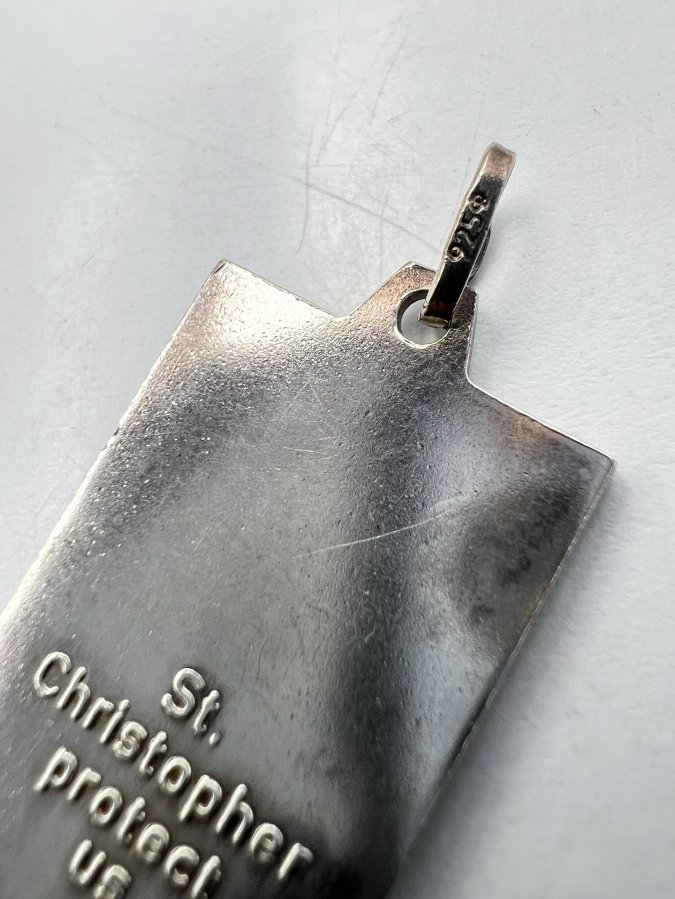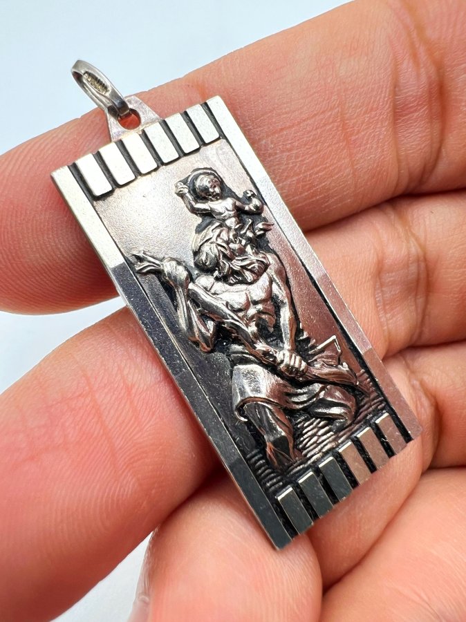 Mặt công giáo St Christopher bạc 925 Germani hoa văn sắc nét rất đẹp, size 19x38mm, nặng 7.71gram (2.05 chỉ), giao thông 2tr6❤️ Thiên 0923.12.6789