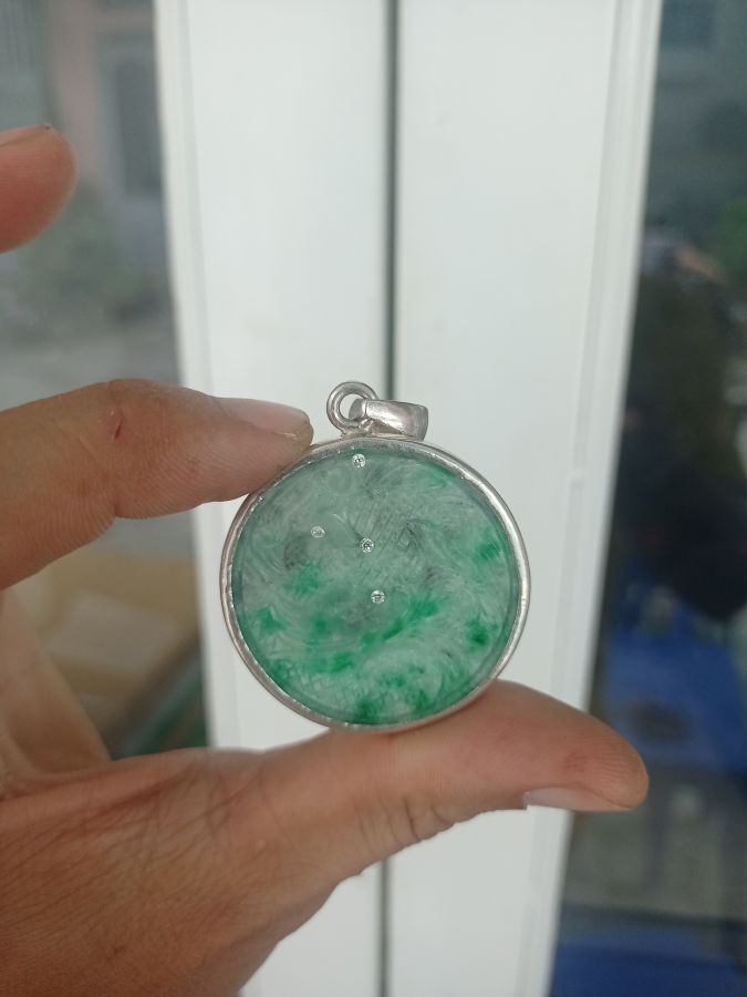 Mặt đá cẩm thạch xưa chạm rồng lên lí xanh. Đã bọc bạc. Giá 600k bao ship