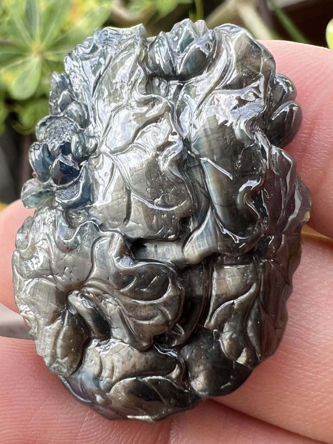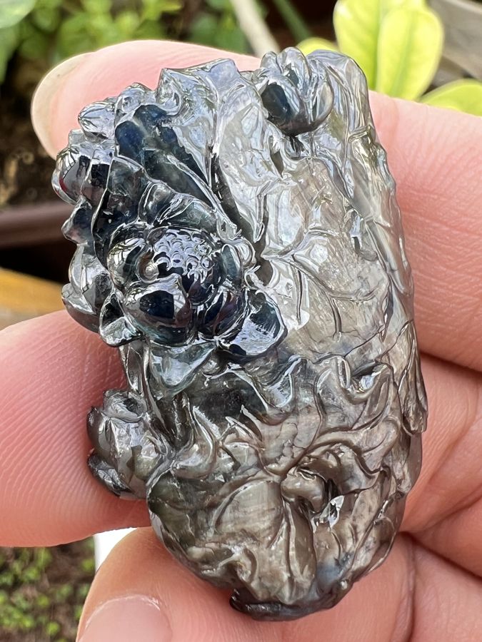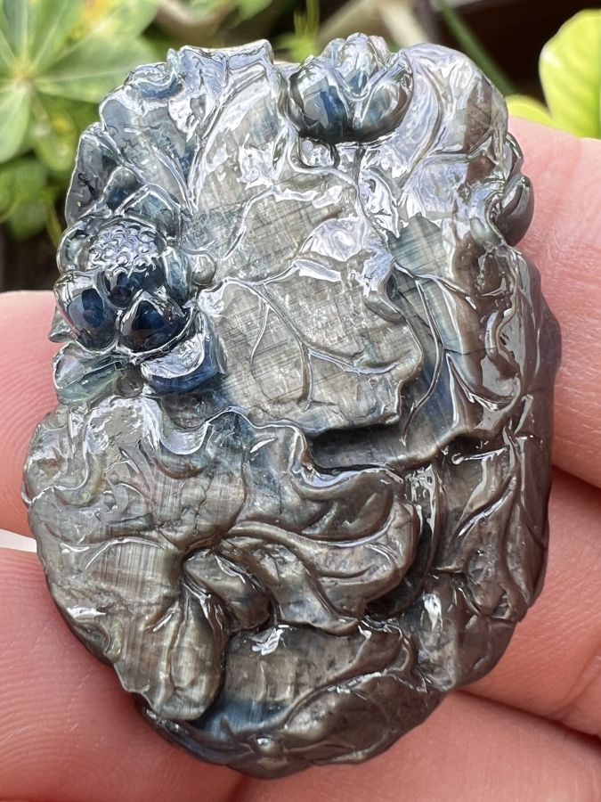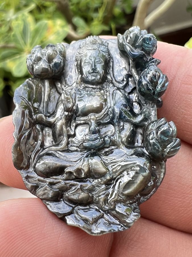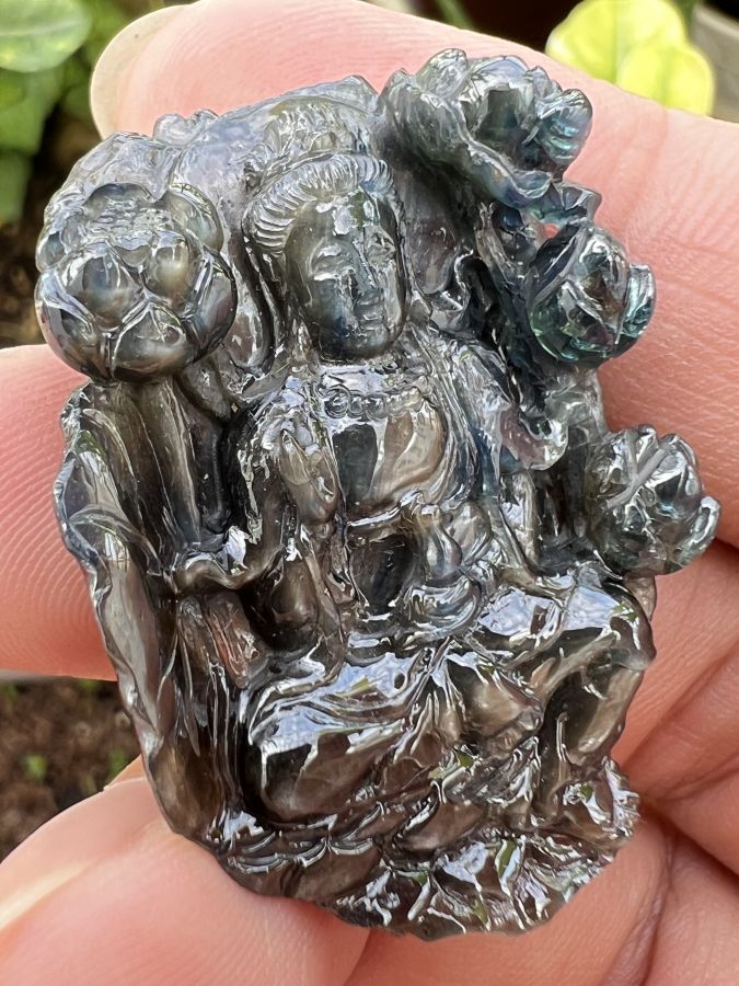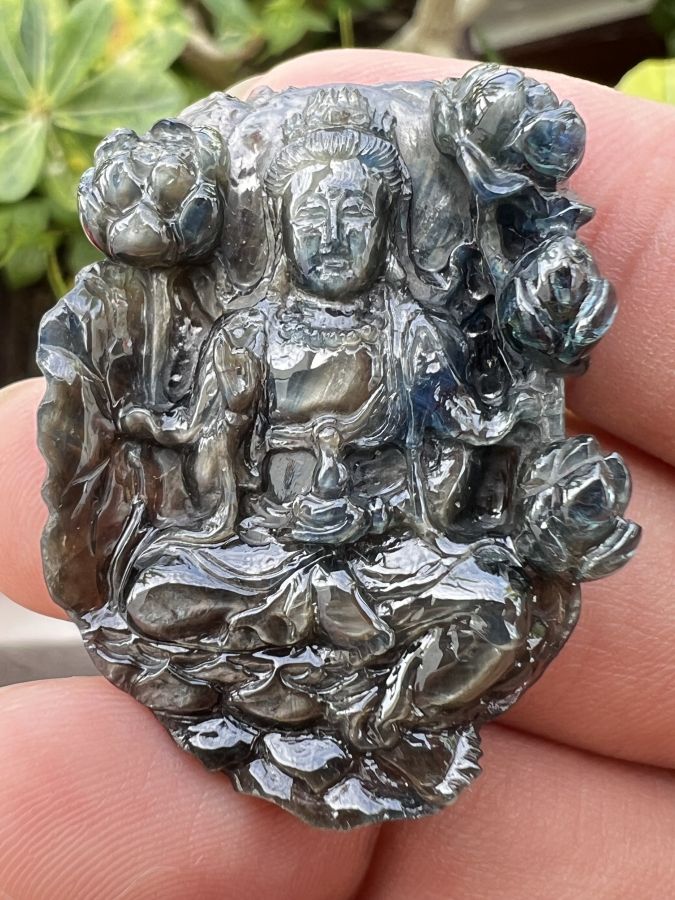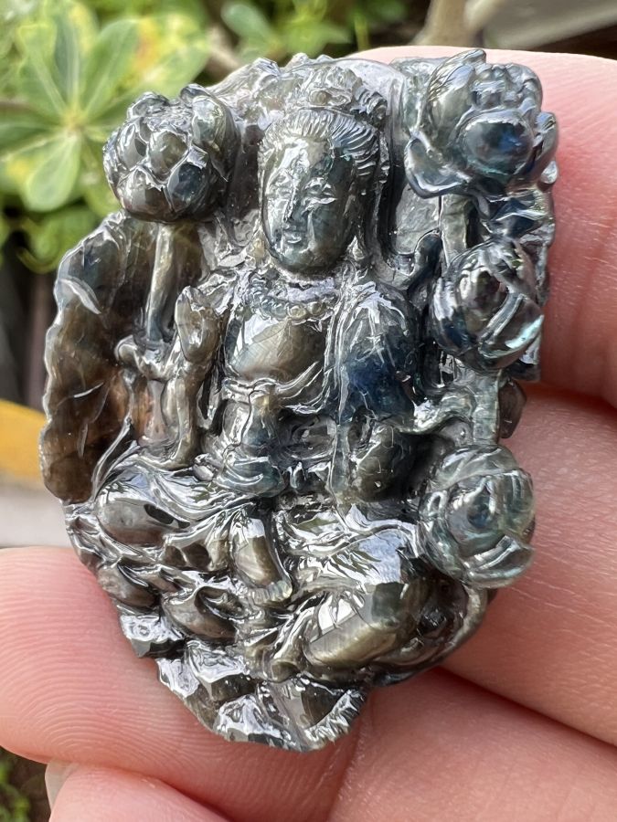 Mặt đá saphia phan thiết chạm Mẹ Quan Âm ngồi đài sen hoa văn sắc nét rất đẹp, size 30x40mm, nặng 92.4ct, giao thông 18tr799☕ Thiên 0923.12.6789