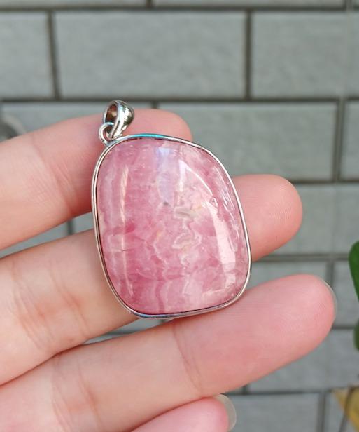 Mặt dây chuyền đá đào hoa viền bạc, bóng đẹp, đeo lên cực sang