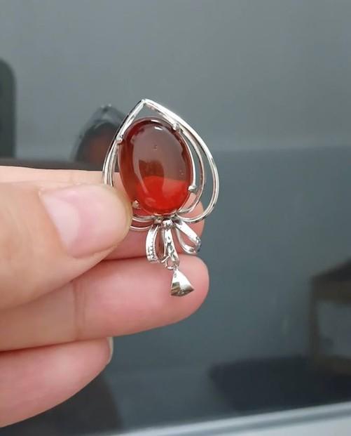 Mặt dây chuyền hổ phách mật ong, Khung bạc hình trái tim đẹp & sang