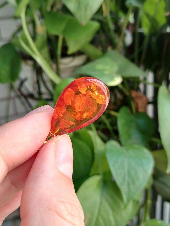 🌈 🌈 🌈 Mặt dây chuyền hổ phách nở hoa, nhỏ nhỏ thôi chứ đốm sáng như pháo hoa ạ, khoen mạ bạc.