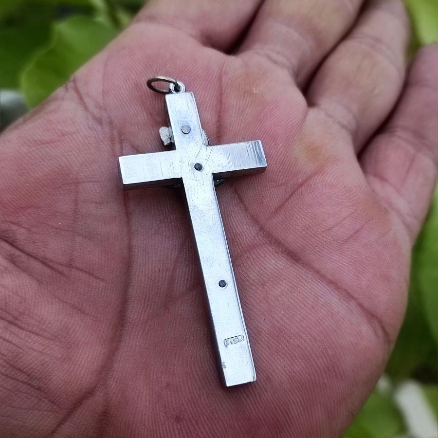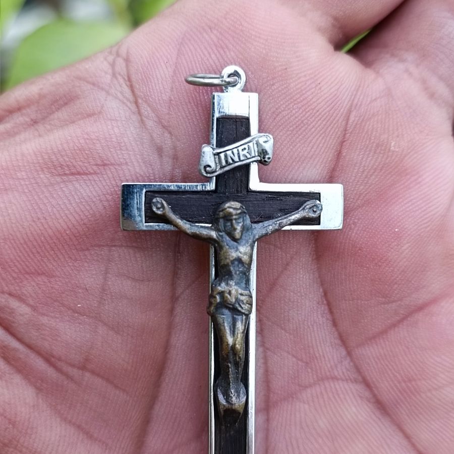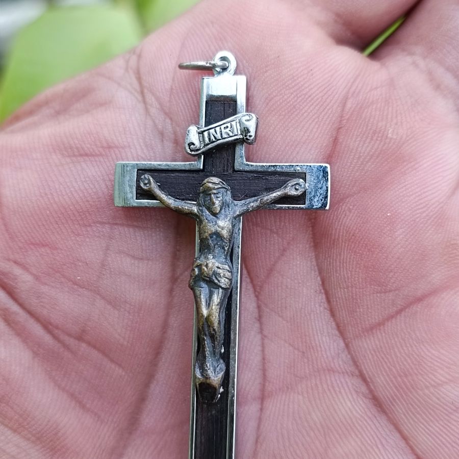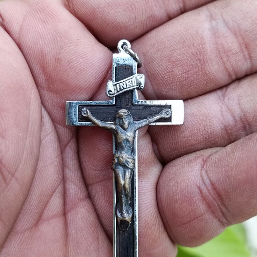 Mặt dây chuyền ngoại Thiên chúa chế tác như thật - Chất liệu Hơp kim - Gổ - Đồng - Bạc - Size 38x58 - Tình trạng rất có hồn trên thân có đóng triện dập nổi MSK - Giá 279k ( KMC ). Kính mời