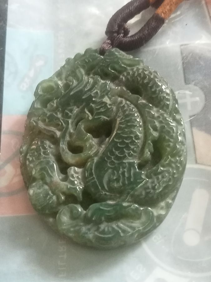 Mặt dây chuyền rồng mả não rêu kt 35x45 mm giá 500k