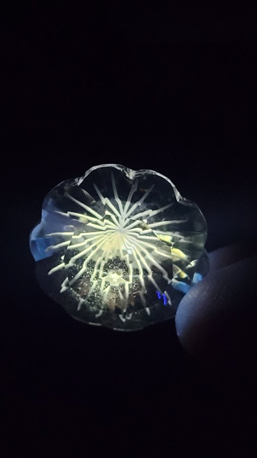 Viên đá ( mặt dây chuyền ) Thạch Anh trắng khắc hoa siêu đẹp. Rọi đèn cảm giác như quả cầu 3D sống động lắm luôn 😍