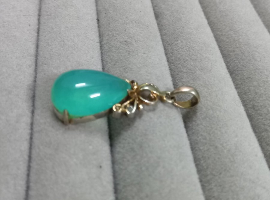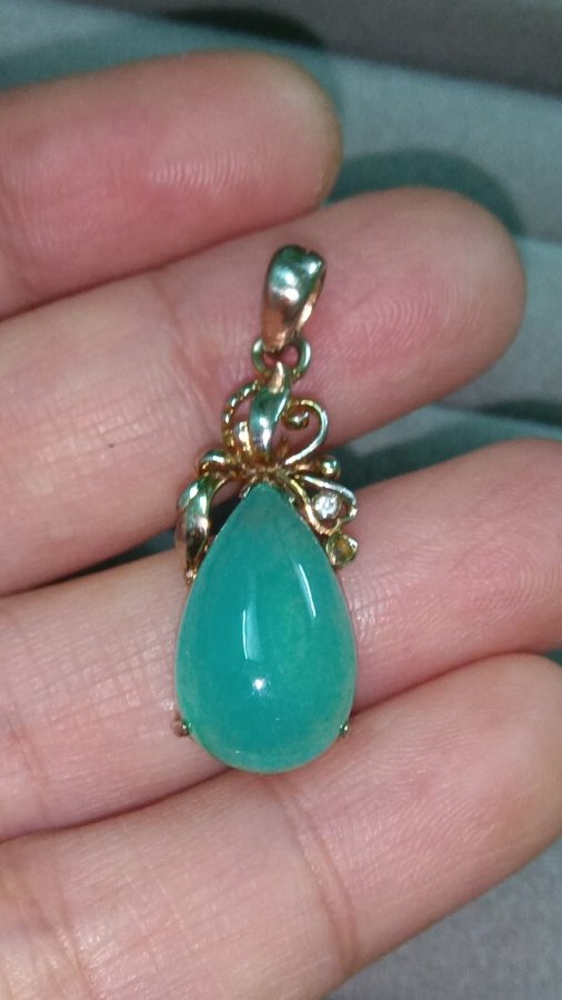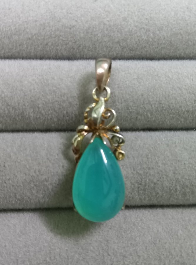 Mặt dây chuyền khung có khắc, kiểu vintage, đá giọt nước màu xanh ngọt ngào rất giống Aventurine chứ em không chắc ạ - nói chung là đẹp nếu Khách thuộc team yêu màu xanh như vậy 🥰