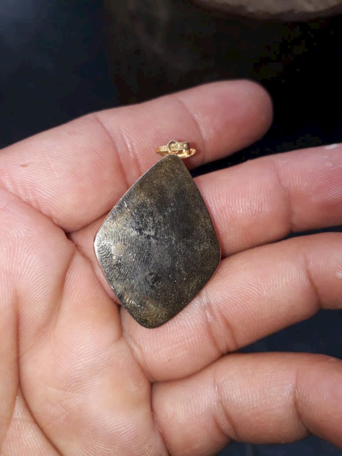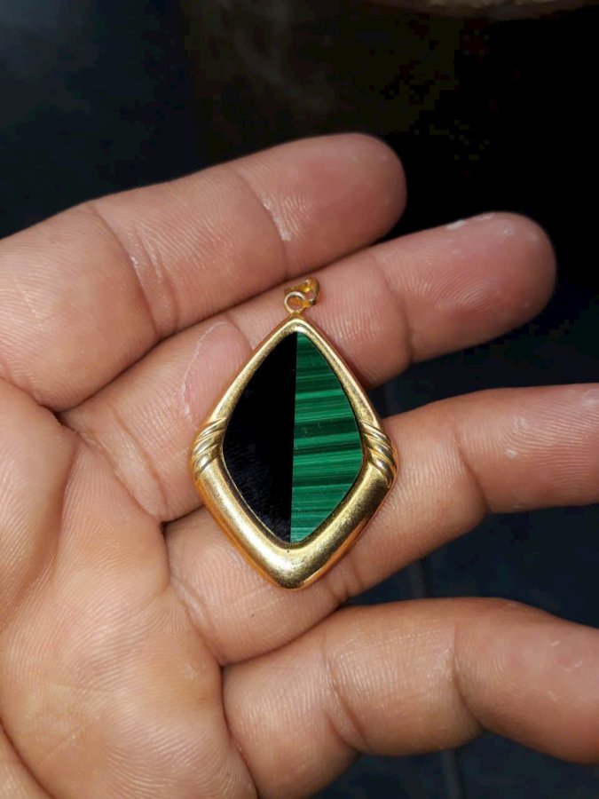 Mặt dây đá huyết áp phối đá lông công. Móc bạc.