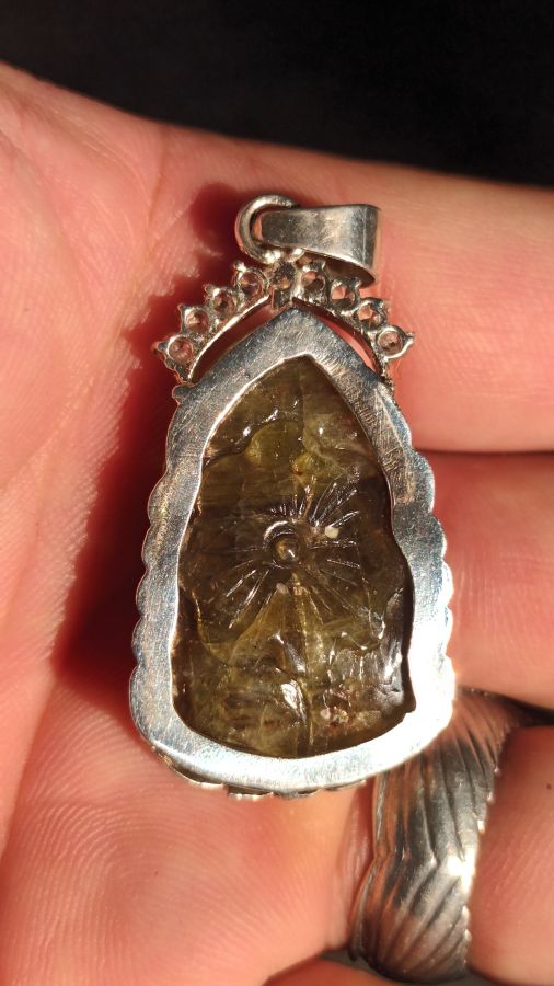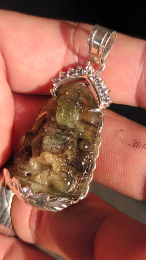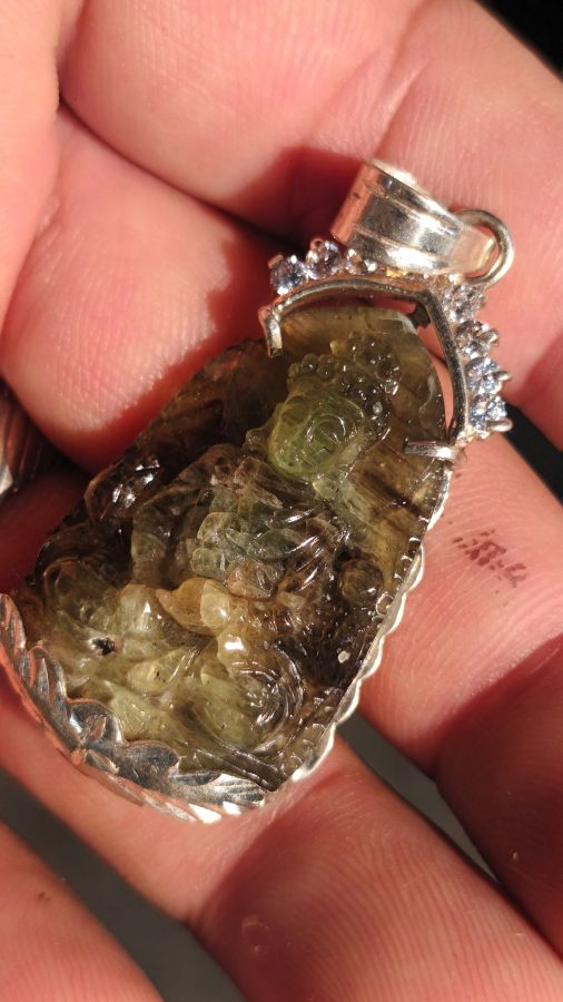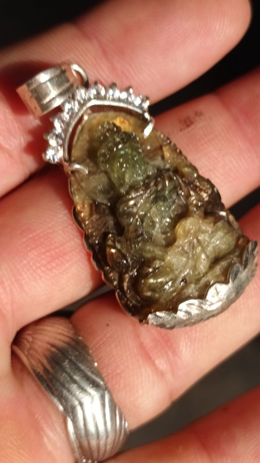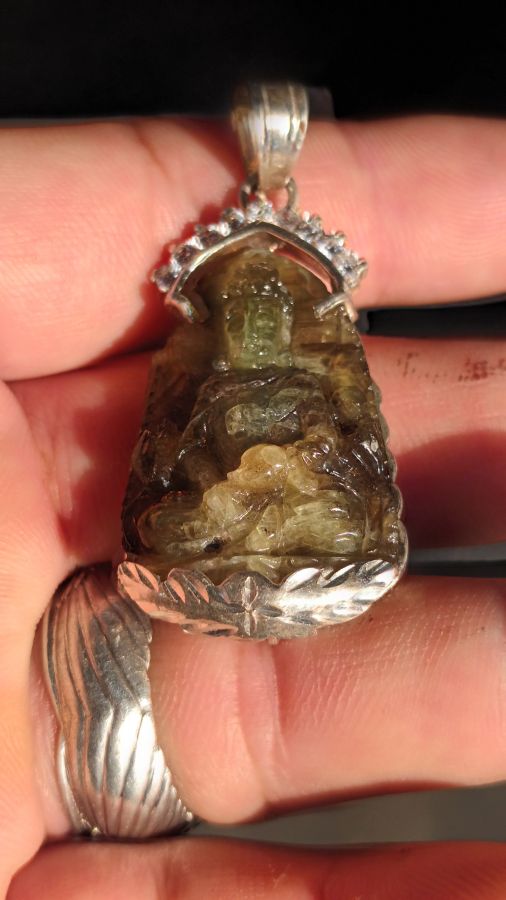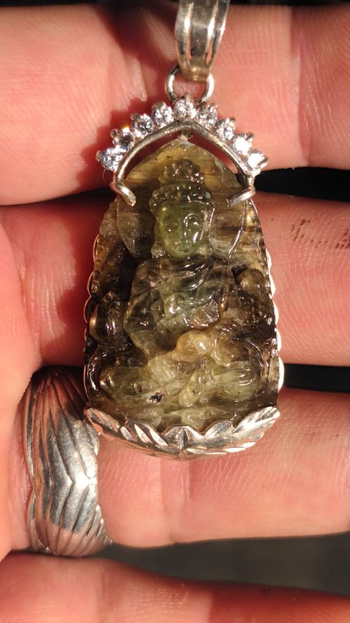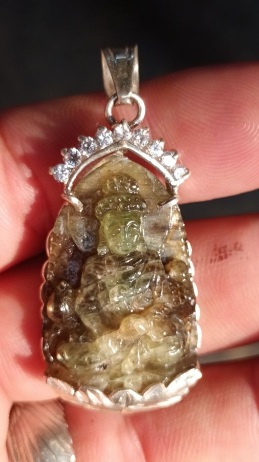 Mặt đeo Phật tổ đá quý saphia xanh chuối tự nhiên bộc bạc giá trên