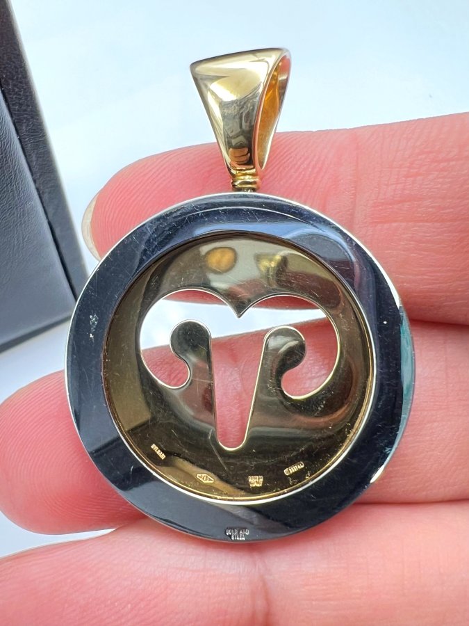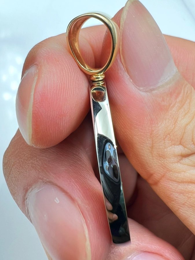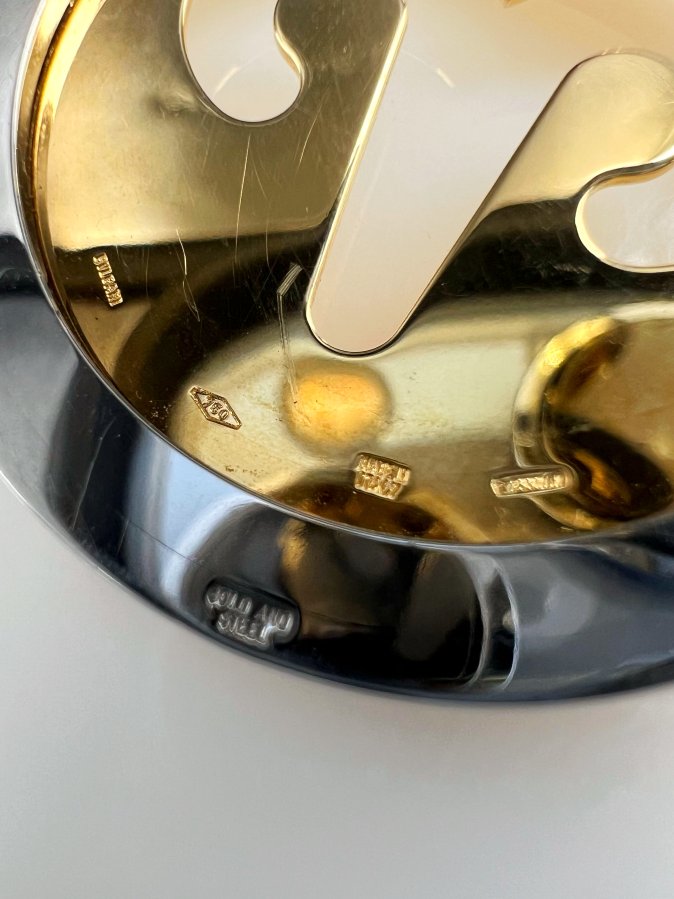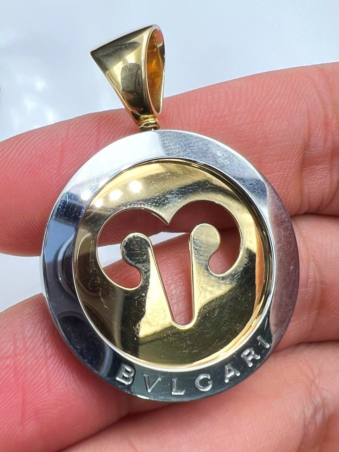 Mặt hợp kim và vàng 18k đemi 2 màu hiệu BVLga.ri mới tinh hoa văn sắc nét rất đẹp, size 32x44mm, nặng 12.91gram (3.44 chỉ), giao thông 24tr5❤️ Thiên 0923.12.6789