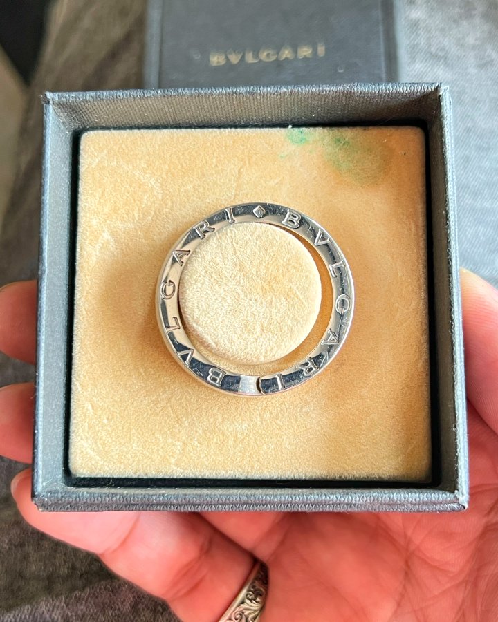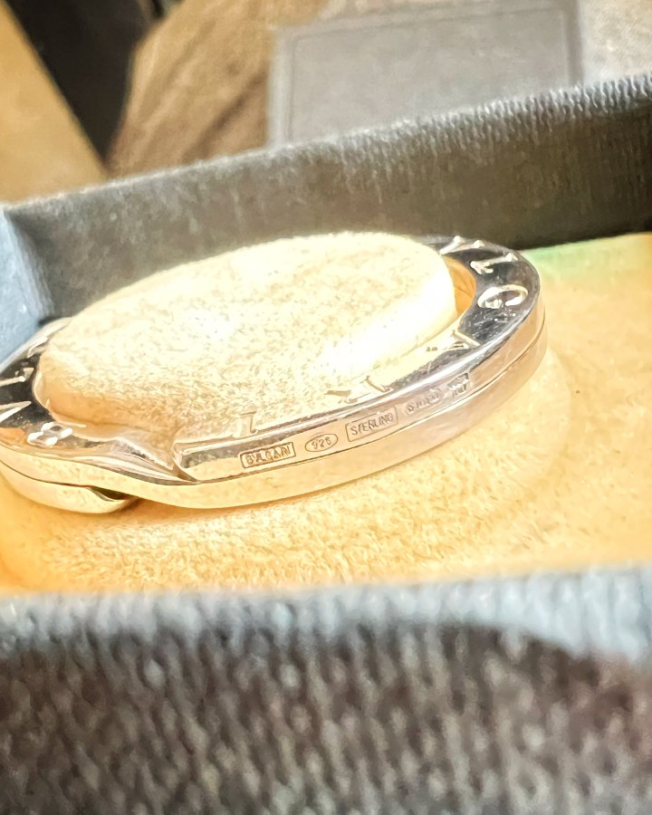 Mặt khoen tròn bạc 925 hiệu BVLgari mới tinh hoa văn sắc nét rất đẹp, còn hộp ❤, size 34mm - đường kính 26mm, nặng 11gram (2.93 chỉ) Thiên 0923.12.6789
