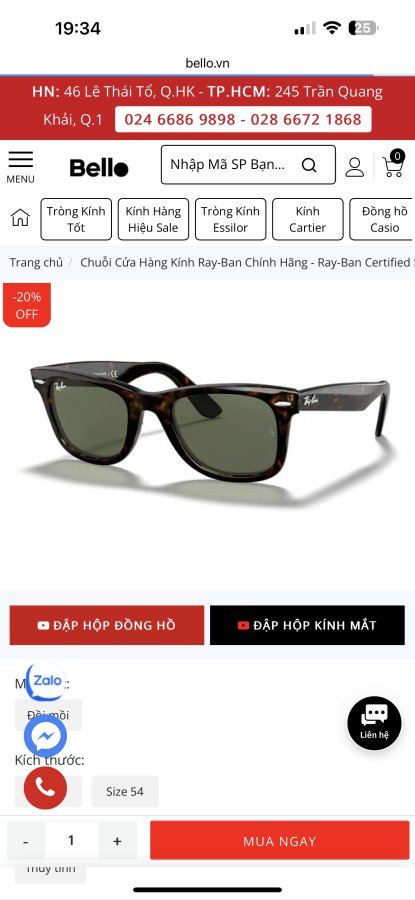 Em mắt kính chính HÃNG RAYBAN WAFAYER ************ rất đẹp zin từ a tới z