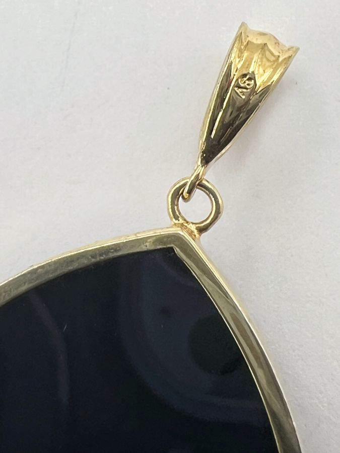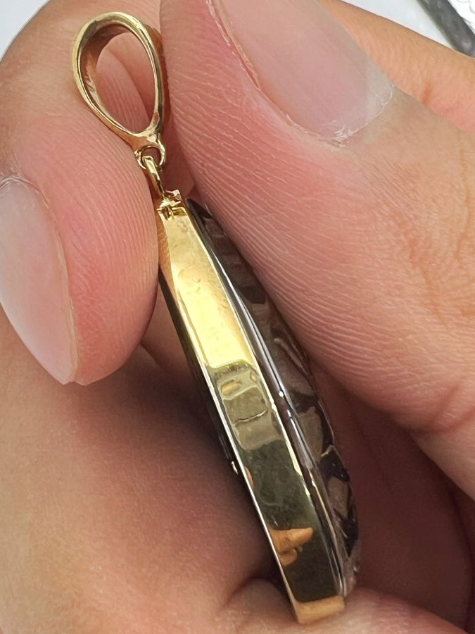Mặt Phật Bất động minh vương bọc bạc lake vàng Nhật hoa văn sắc nét khoen đính soàn 1.2li rất đẹp, size 27x44mm, nặng 10.2gram